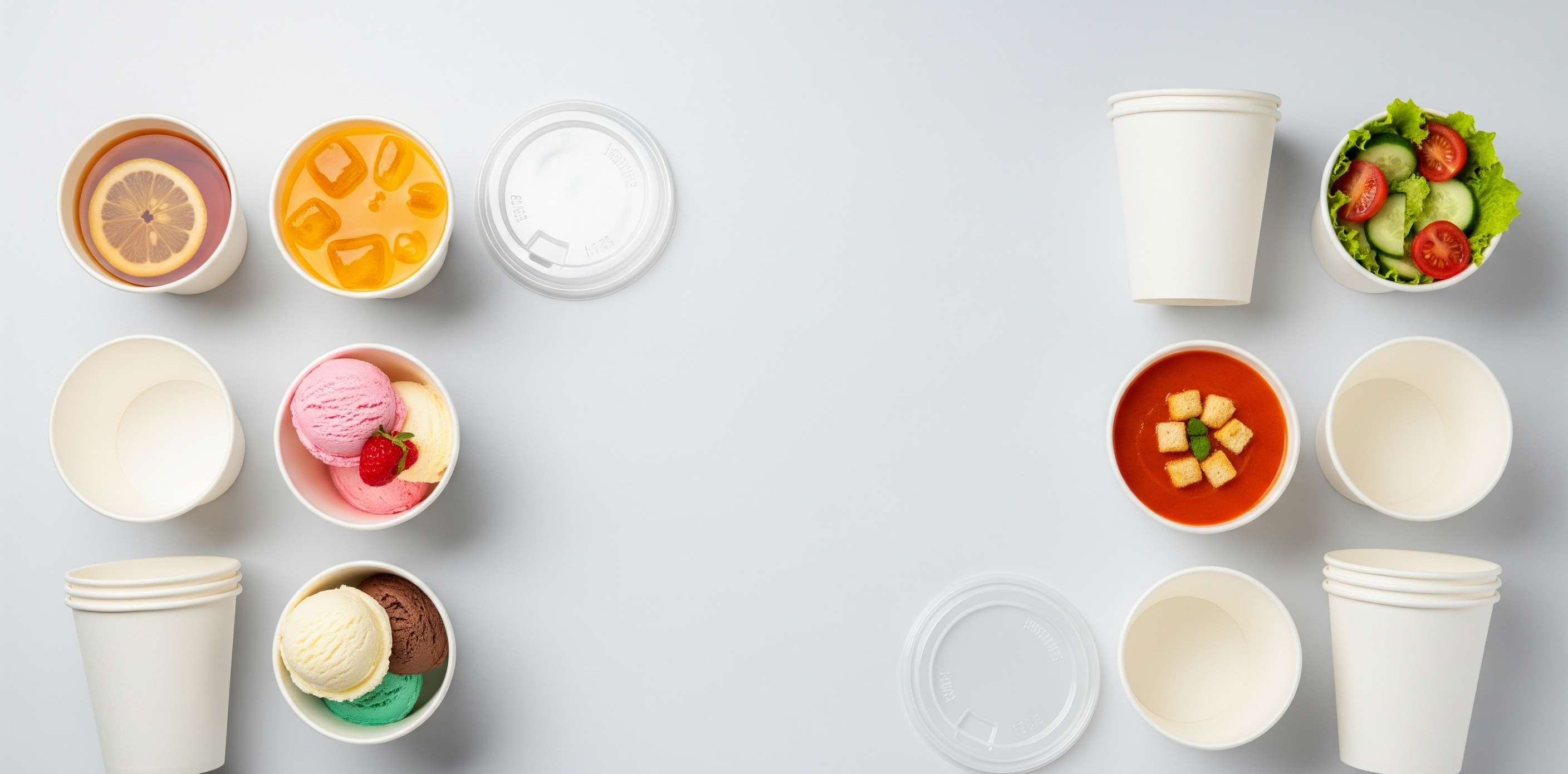 Sturdy disposable bowls perfect for soups, salads, noodles, and other wet foods.
